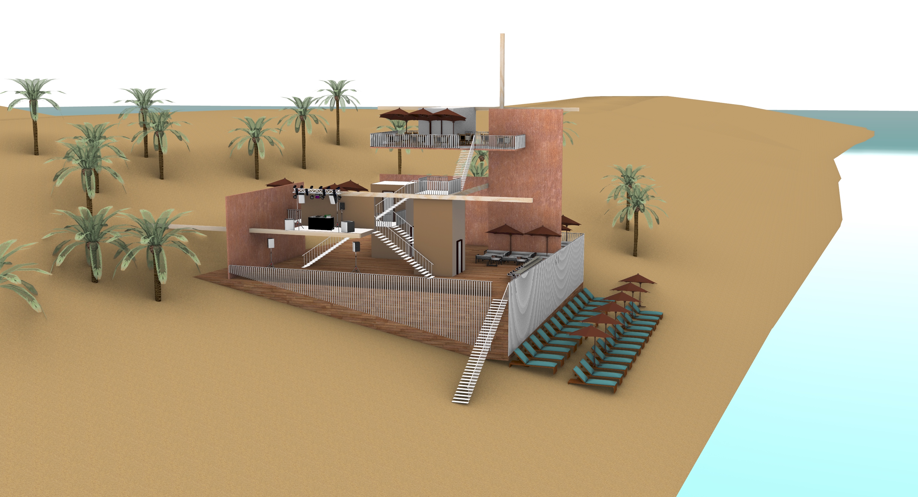 These assignments continued the work of the previous assignments, however, here more materials were provided which increased the creative freedom. In special students were asked to take one of their assignments and translate it into a digital designed (rhino) real-life sized object. I choose to make a beachclub.